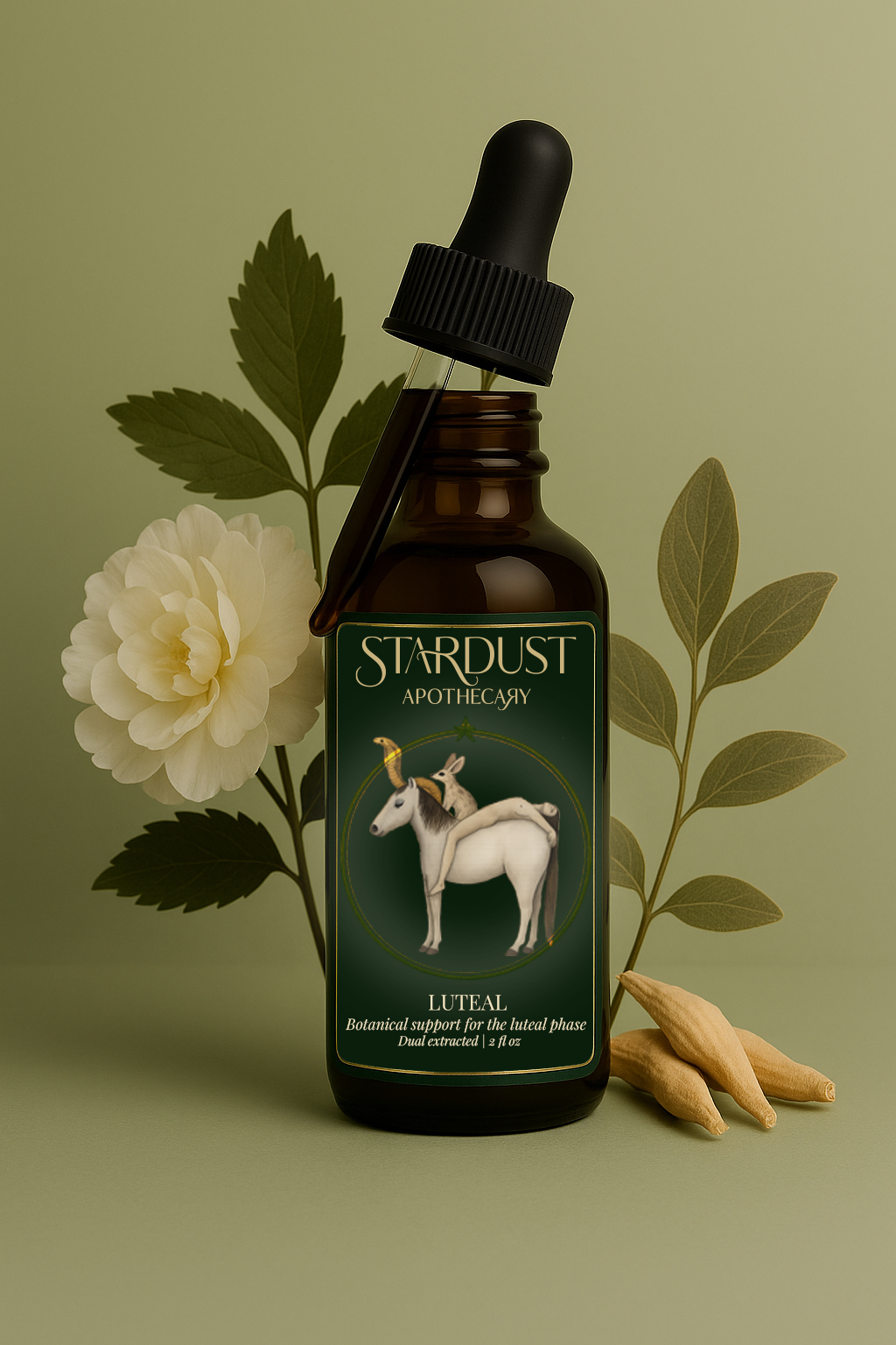 Luteal is a nourishing, hormone-harmonizing tonic designed to support the body in the second half of the menstrual cycle. This phase relies on balanced progesterone, moderated estrogen, and a soothed nervous system. Our blend combines hormone-modulating, nervine, and adaptogenic botanicals to ease premenstrual tension, encourage emotional steadiness, and help the body flow with cyclical changes.