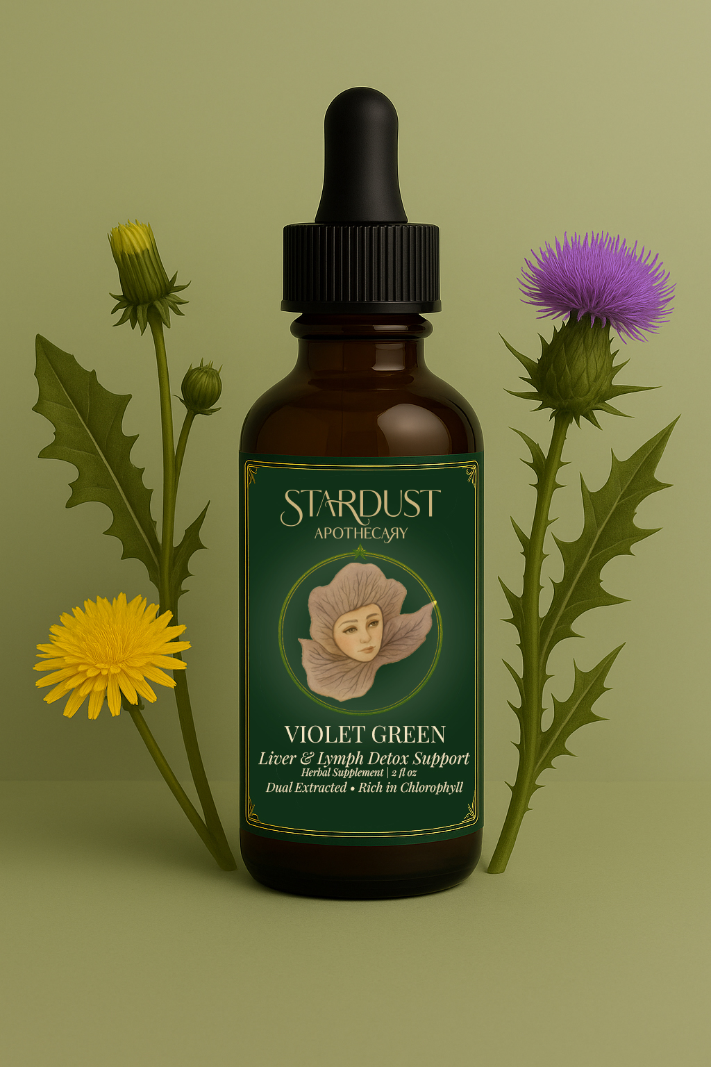 Formulated as a gentle daily detoxifier, Violet Green encourages the movement of stagnant energy, supports liver and lymphatic flow, and inspires inner clarity. Itβs ideal for seasonal transitions, emotional heaviness, or whenever you feel the need to lighten your load β physically, energetically, and emotionally.